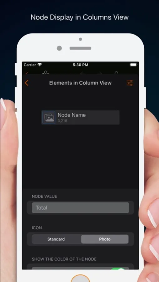 - Columns view, for convenient and familiar operation, similar to the columns view of the file application.