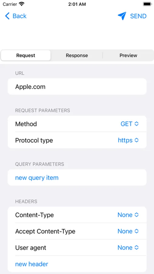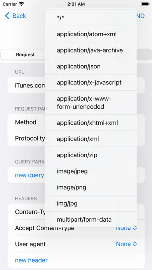 An application for creating an HTTP request and testing server applications. History recording is supported.