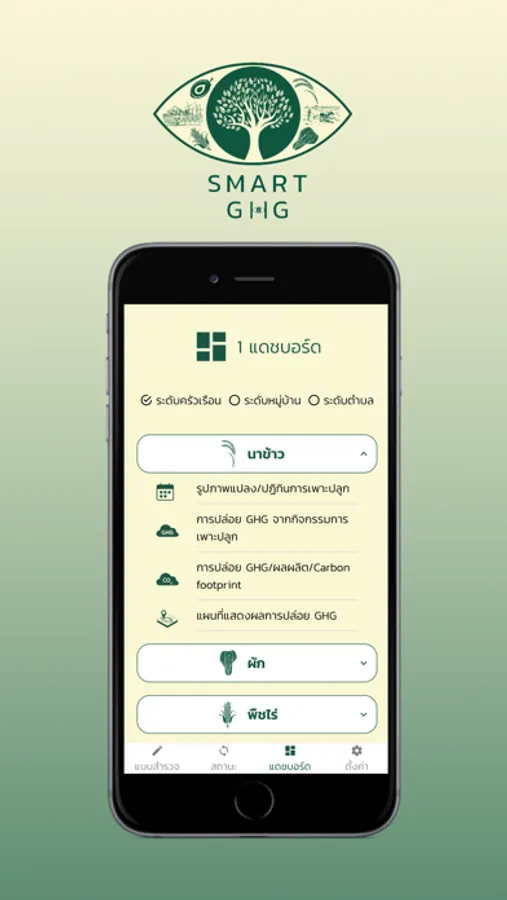 1.3 สามารถรายงานค่าการปล่อยก๊าซเรือนกระจก คาร์บอนฟุตพริ้นท์ การกักเก็บคาร์บอน ตามตำแหน่งแปลงเพาะปลูก/แปลงป่าไม้ฯ