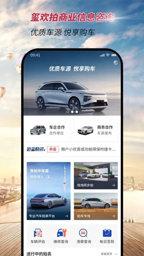 车拍类交易服务平台,是集竞价拍卖、车况查定、安全支付、物流运输及手续代办于一体,
