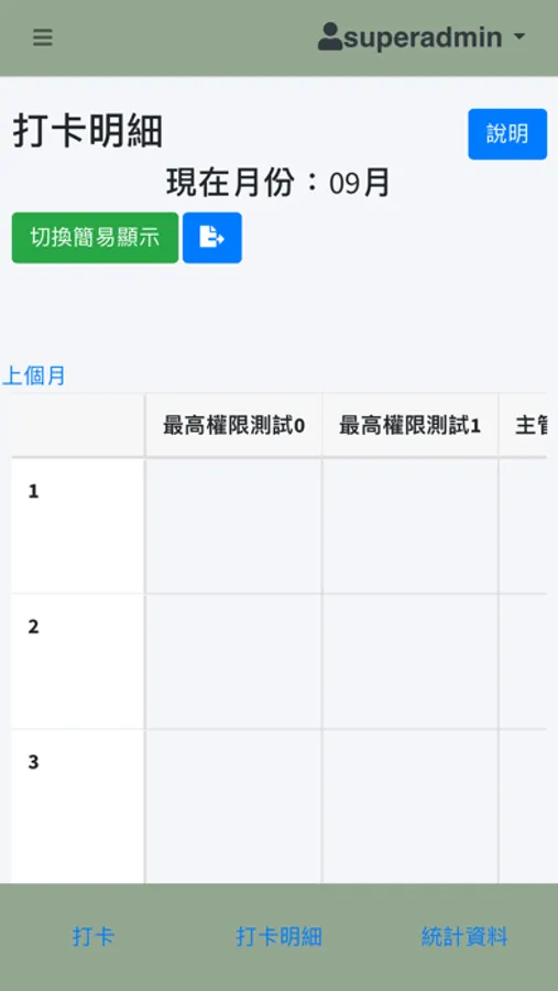 除了檢查項目填寫外,系統還結合了智慧打卡系統,讓使用者更快速的進行上下班打卡動作,並讓管理者快速產生報表,