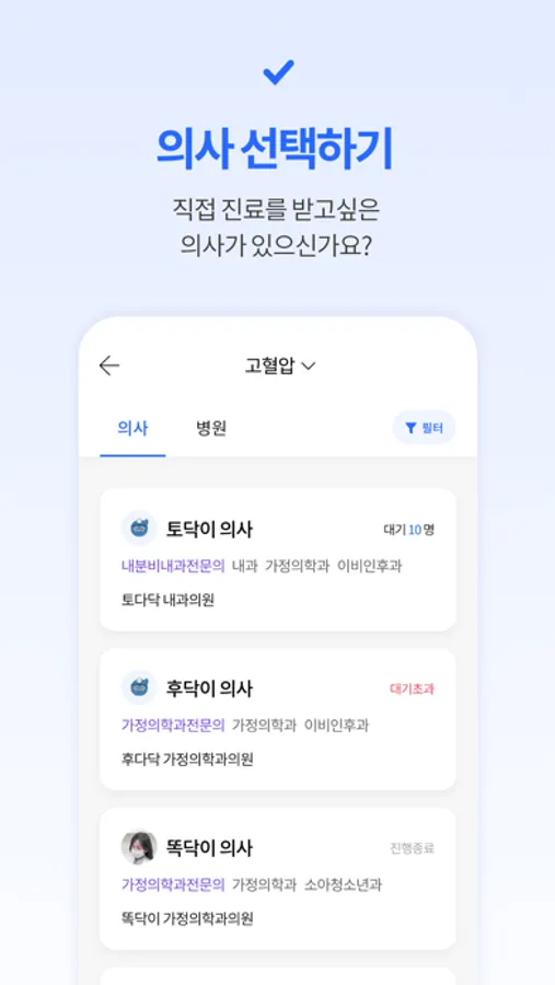 직접 가지 않아도 오프라인 진료와 동일하게 진료를 받아보세요