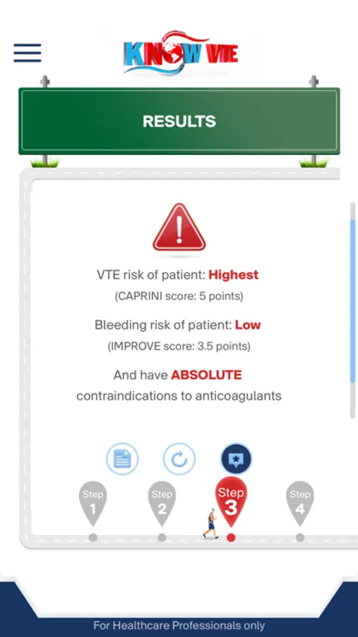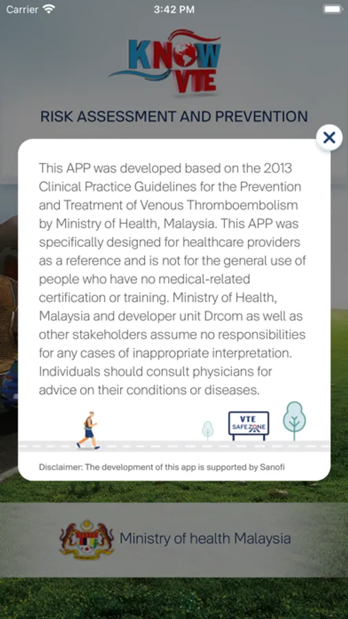 KnowVTE app allows for easy venous thromboembolism (VTE) and bleeding risk assessment using the various risk assessment models (Padua, Caprini, IMPROVE) and provides recommendations for prophylaxis based on the Malaysia Ministry of Health guidelines.