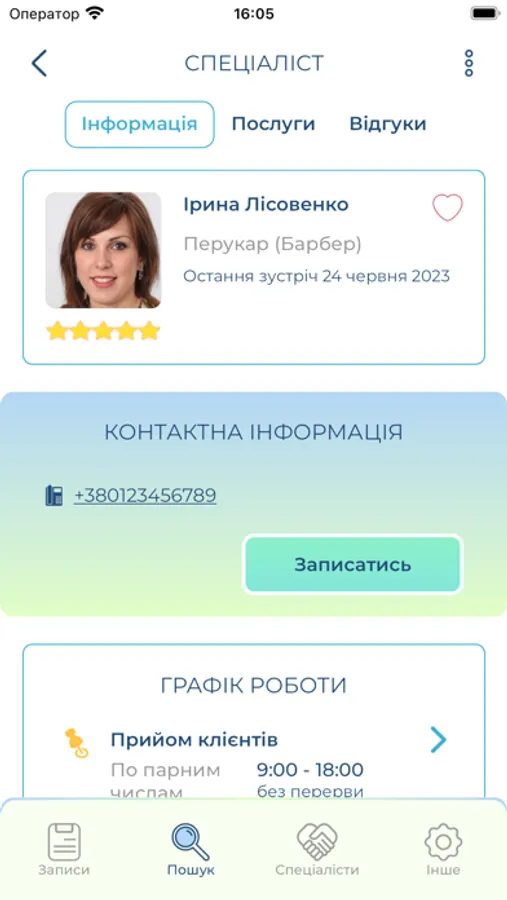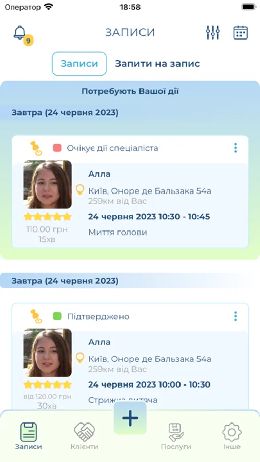 As a specialist, you can use the Kolo Tebe mobile application to register clients both manually and using the online registration form, where the client can choose a convenient time within your work schedule. To expand your audience of customers, you can post a link to your profile or registration form on your social networks. Try it, you will definitely like it!