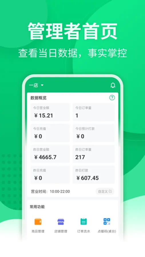 掌中宝是一款移动式SaaS收银产品,支持轻餐(先结账后用餐)、快速收银、查看订单列表、交接班等功能。