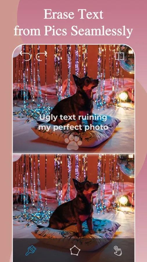 If you have disturbing text on your image, our app has you covered. Text remover lets you erase text from photos. With just a few taps, easily remove text from any photo.