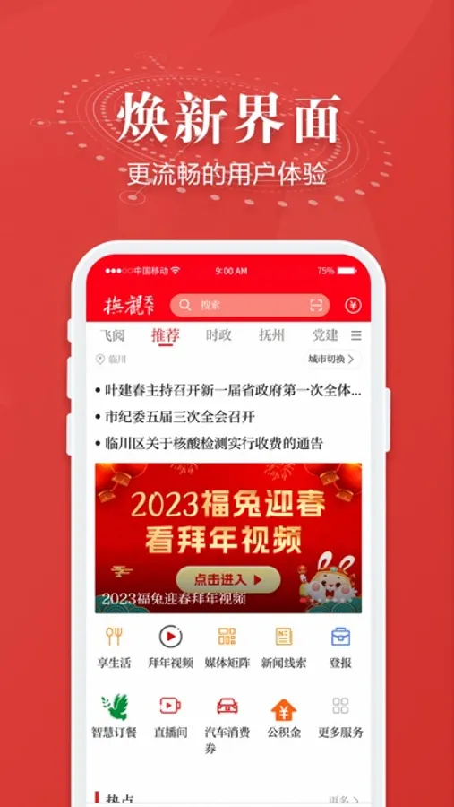 在抚州,观天下!“抚观天下”客户端是抚州市融媒体中心、市属传媒集团自主研发、重点建设的“新闻+政务服务商务”综合平台,系抚州市委、市政府唯一新闻客户端,坚持“移动优先 融合发展”理念,创新移动端表达方式,积极传播中央、省、市重大决策部署,聚焦民生、民需、民情、民望,7X24小时不间断发布权威资讯,提供视频直播、生活美食、在线商城、求职招聘、房产、汽车、消费券等服务,致力打造具有区域竞争力和影响力的新型主流媒体。