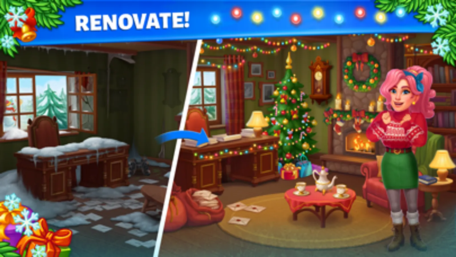 Merge Christmas is a family game that uncover story of adventure, love and magic. Christmas is coming! Merge items, match tools and help Santa in his lovely home.