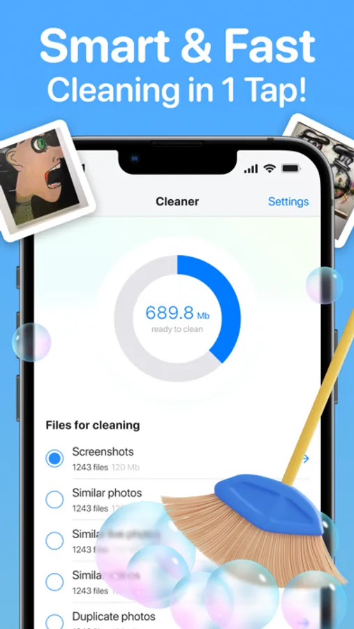The application has a wide functionality for cleaning obsolete data on your device. Run out of storage on your device? No problem! Clean up duplicate videos and photos and free up a huge amount of storage without wasting hour of your time.