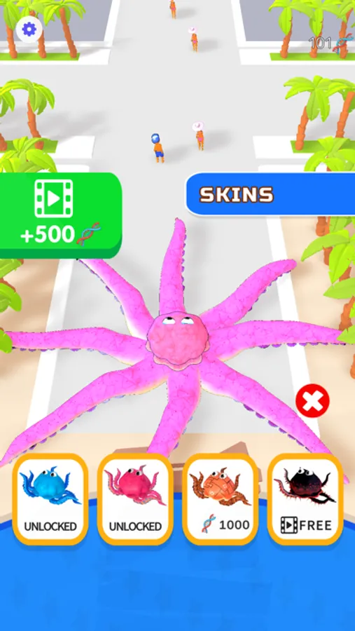 Grab your enemies with your tentacles, grow in size, take over the city!