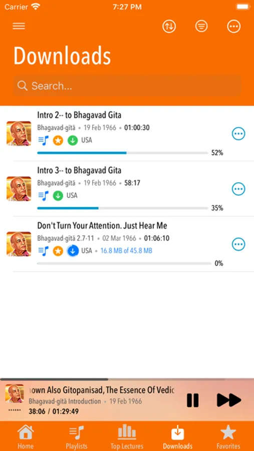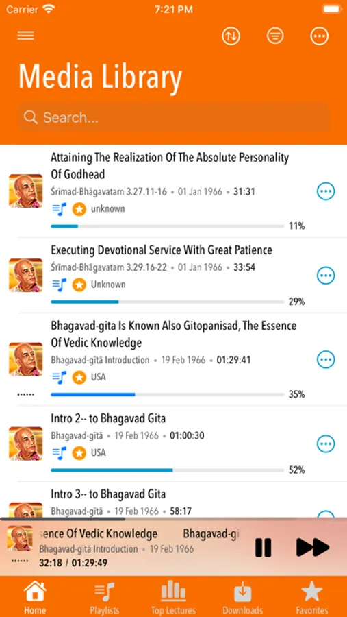 3. Search for lectures on specific verses. For instance to search for lectures give by Srila Prabhuapada on Bhagavad-gita 4.34 simply type bg 4.34 in the search bar. Likewise for Srimad-Bhagavatam (sb X.X.X) and Caitanya-caritamrta (cc x.x.x).