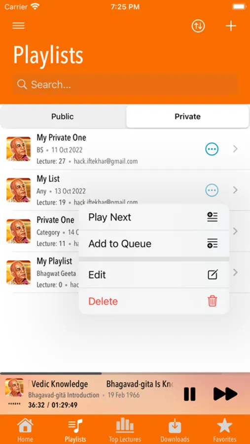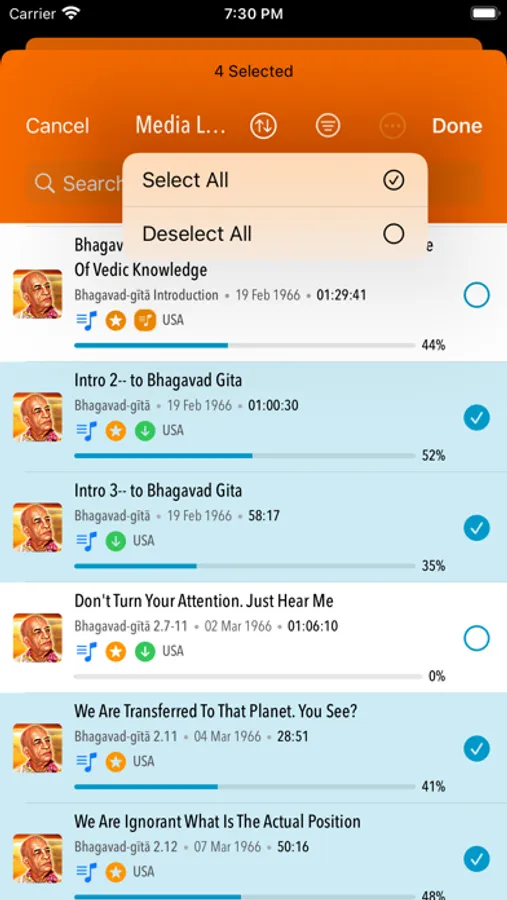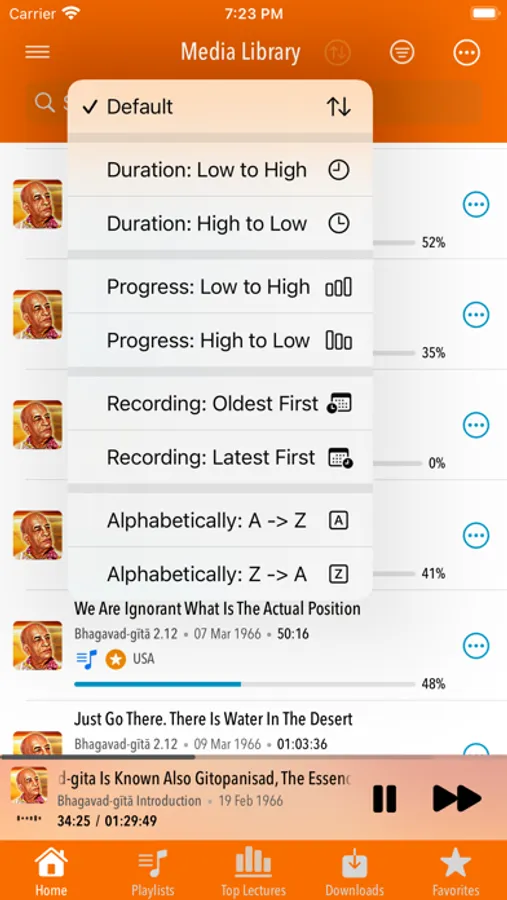 2. Filter lectures by category (Bhagavad-gita, Srimad Bhagavatam, Conversations, Walks, and much more)