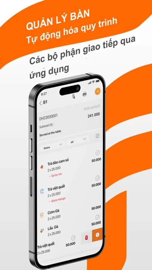 - Thu ngân có thể theo dõi toàn bộ quá trình chế biến thông qua hệ thống của phần mềm, đảm bảo khi món ăn được hoàn thành sẽ được đưa đến tay thực khách ngay lập tức.