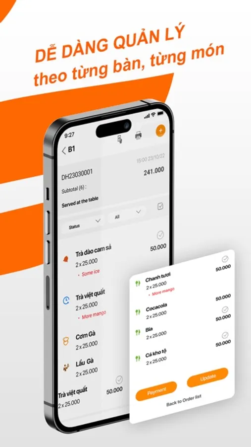 Nhân viên order qua thiết bị điện thoại thông minh, giúp khách hàng dễ hình dung và lựa chọn món ăn nhanh chóng.