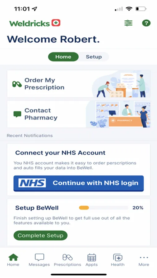 Your Weldricks pharmacy is never more than a tap away. Order prescriptions, book sessions with Weldricks, or send a quick message from the app – whatever your need, you can get in touch with your chosen Weldricks pharmacy.