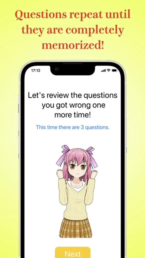 Questions answered wrongly will be repeatedly given until correct and reappear after a while.