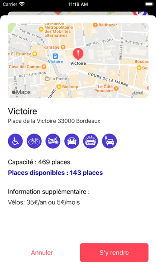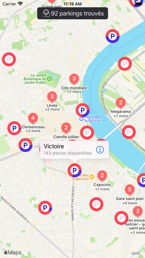 - Affichage de l'ensemble des parkings de Bordeaux Métropole