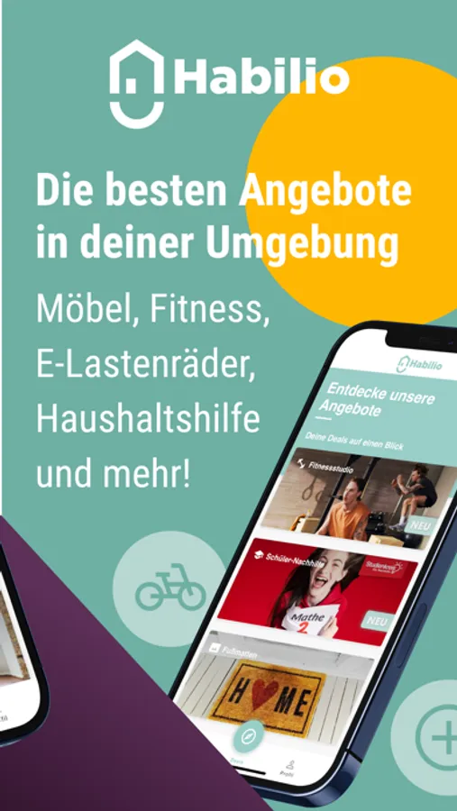 Für dich, für mich, für uns – Habilio verbindet dich mit den besten Deals in deiner Umgebung. Spare Geld beim Möbelkauf und Fahrradverleih oder finde Alltagshelfer in deiner Nähe. All das und noch mehr ist Habilio – Wohnen von Morgen mit Deals von heute. Und das ist erst der Anfang! Teste Services, spare dabei Geld und hilf uns, noch besser zu werden.