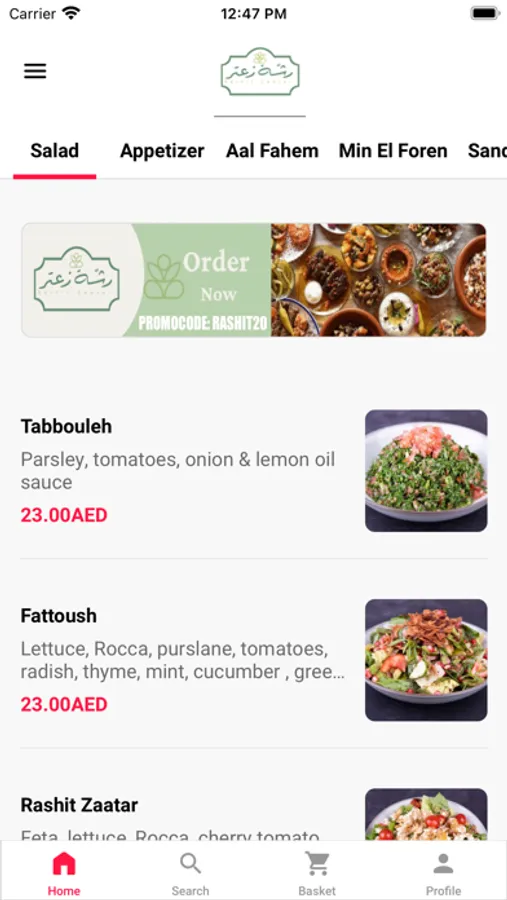 We provide the best Mouajanat,saj,salad and pizza,order now through our app!
