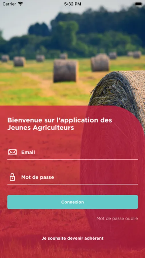 ADHERER A JA : Pas encore adhérent ? à l’ouverture de l’appli, un onglet permet de faire une demande d’adhésion.