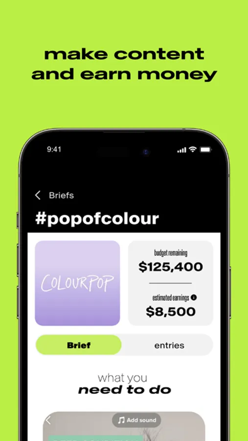All you must do is download the app and connect your TikTok. As soon as our team has vetted you, you can access all the brand campaigns that are right for you.