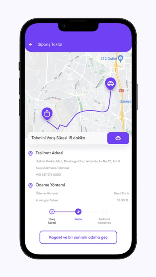 -Kuryeyi teslimat süresince uygulama üzerinden takip edebilme