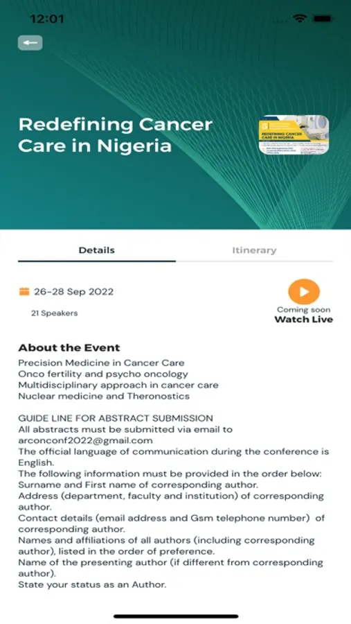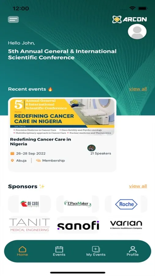 A conference application developed by the Association of Radiation and Clinical Oncologists of Nigeria.