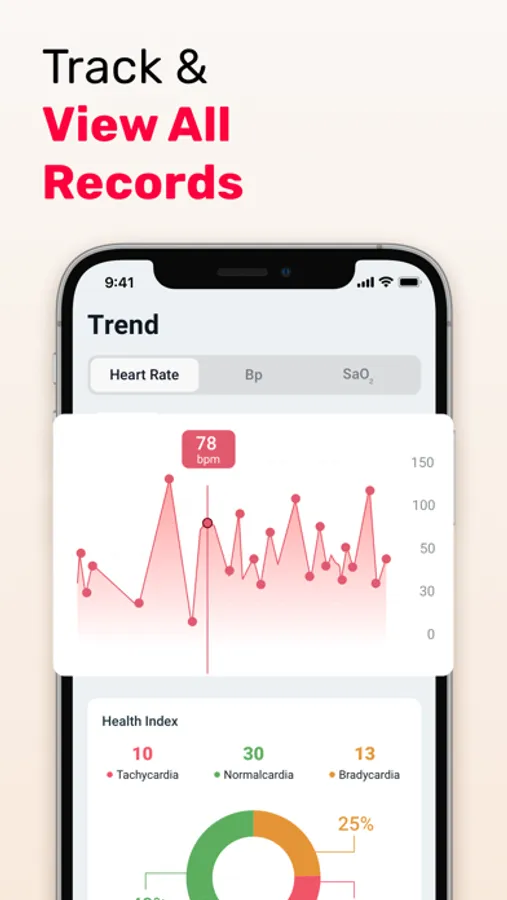 Heart Plus goes beyond taking heart rate, you will receive a comprehensive report based on your age, gender, weight, height, and status. It will help you develop lifelong habits to improve your heart health.