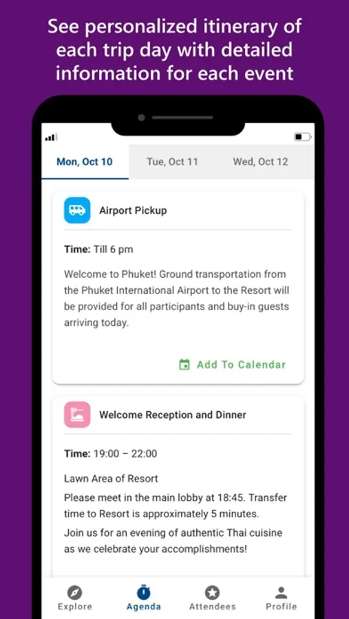 • Access all your trip details: transportation, accommodation, activities, events, etc.
