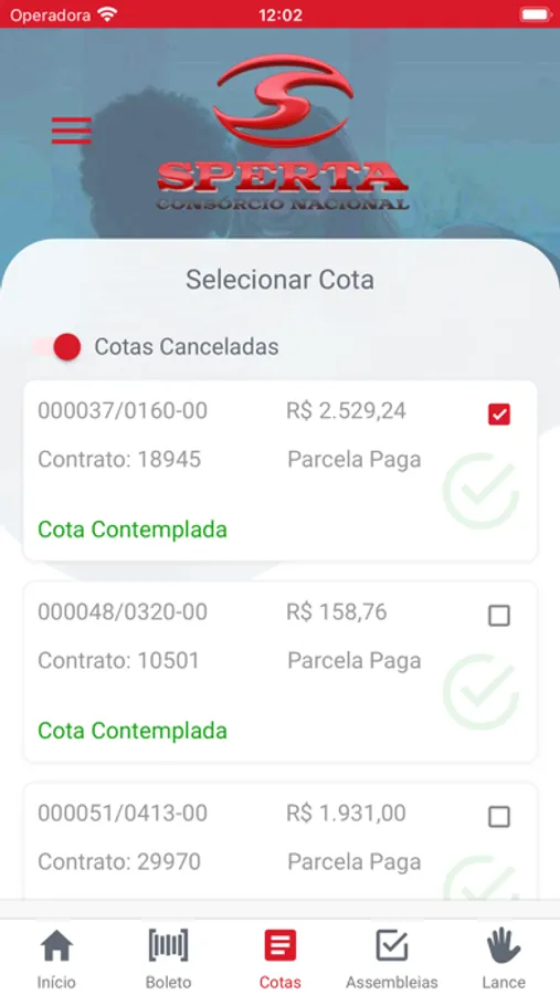 Com o aplicativo Sperta Consórcio você tem acesso a todas as informações sobre a sua cota, com segurança e facilidade.