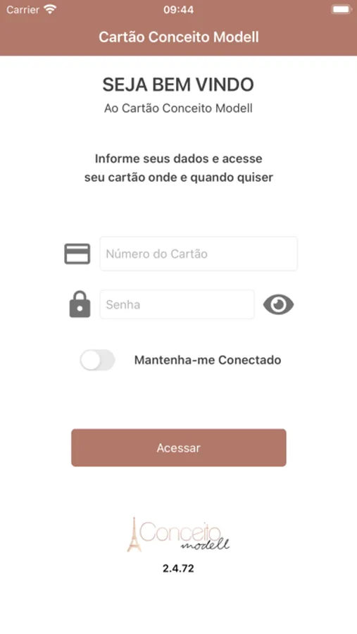 Com o aplicativo "Cartão Conceito Modell", todos os clientes poderão acessar faturas, lançamentos e pontos de seus cartões, com toda praticidade e comodidade. Baixe agora o nosso aplicativo e consulte quando e onde quiser, toda a movimentação do seu cartão.