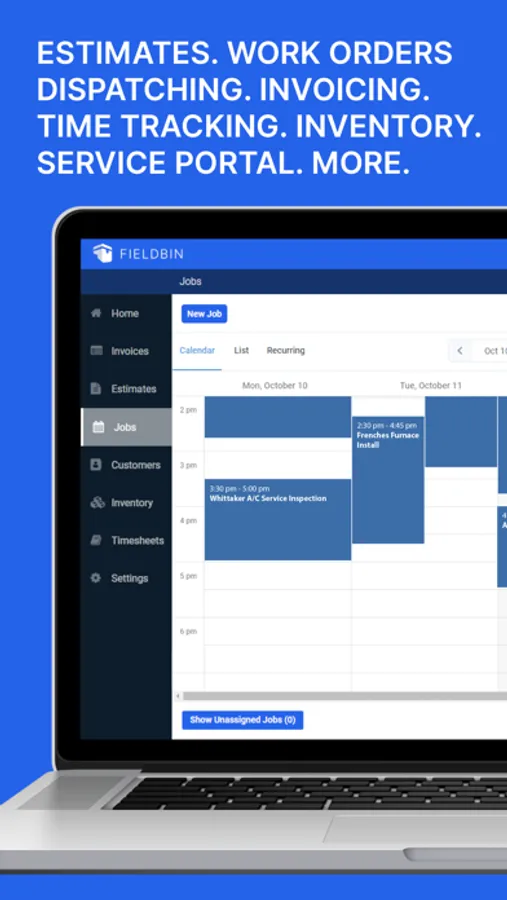 Instantly build a calendar that you and your team can access from any device. Simply drag and drop your technicians to any job (not literally!)