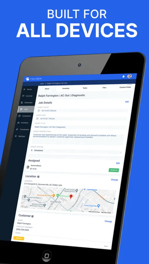 Job management is hard when you operate multiple crews on multiple jobs. FieldBin makes it easy by creating a shared calendar that can show you when and where each new project is taking place. Create client-facing job checklists to show proof of work. Team members access all pertinent job photos, emails, and docs. Generate custom forms for each project stage. Stay better organized when juggling multiple jobs.