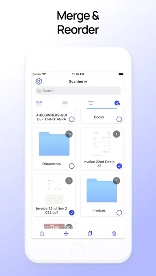 - Multi-page scanning: With Scanberry, you can scan multiple pages at once, and easily organize them into a single PDF.