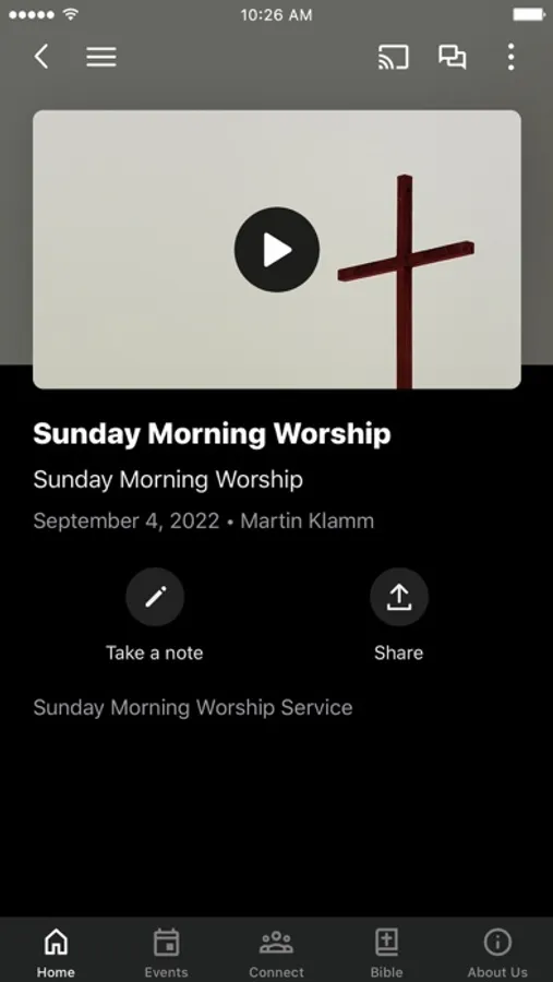 This app will help you stay connected with the day-to-day life of our church. With this app you can: watch or listen to past messages; stay up to date with push notifications; share your favorite messages via Twitter, Facebook, or email; and download messages for offline listening.