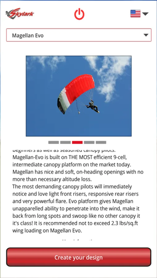 - Choose your preferred parachute model from the Skylarkparachutes line of parachutes.