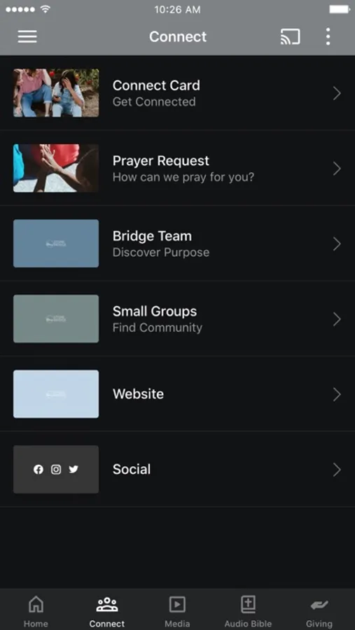 This app will help you stay connected with the day-to-day life of our church. With this app you can: watch or listen to past messages; stay up to date with push notifications; share your favorite messages via Twitter, Facebook, or email; and download messages for offline listening.