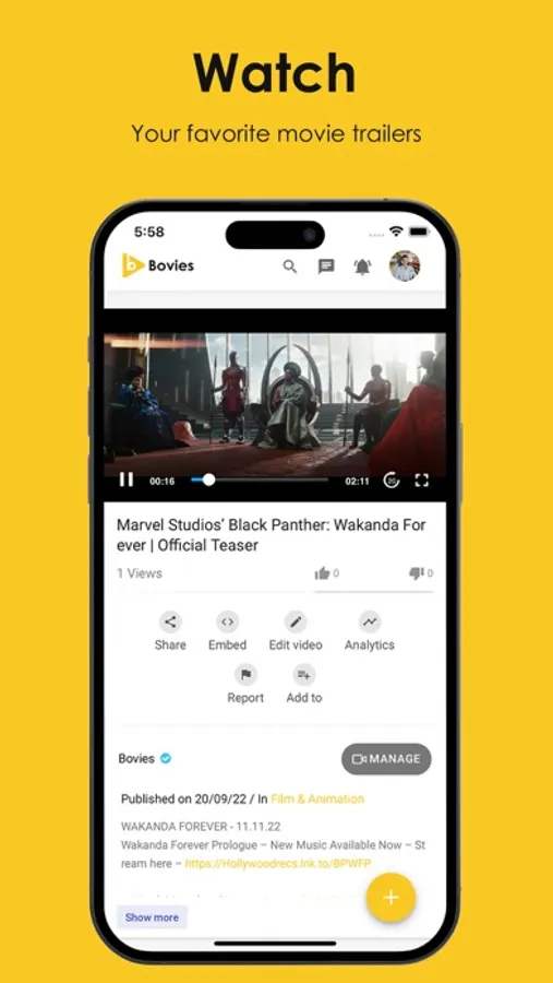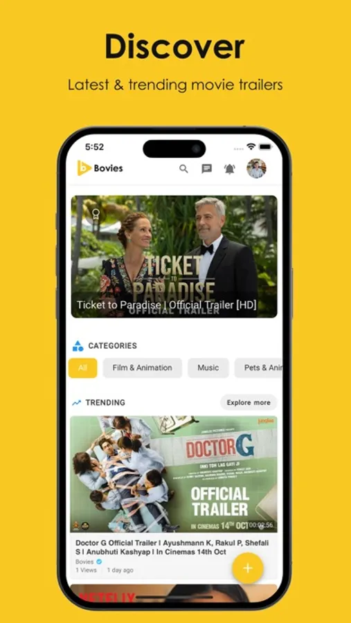 • We add the latest movie and series trailers on our app. Users are also welcomed to share their favorite trailers on The Bovies as well.