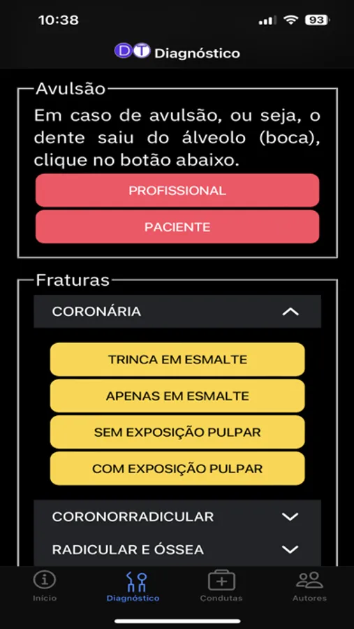 O aplicativo Dental Trauma é uma ferramenta auxiliar e não substitui a avaliação de um profissional qualificado (cirurgião-dentista). Os usuários deste aplicativo devem procurar atendimento odontológico antes de tomar qualquer decisão médica.
