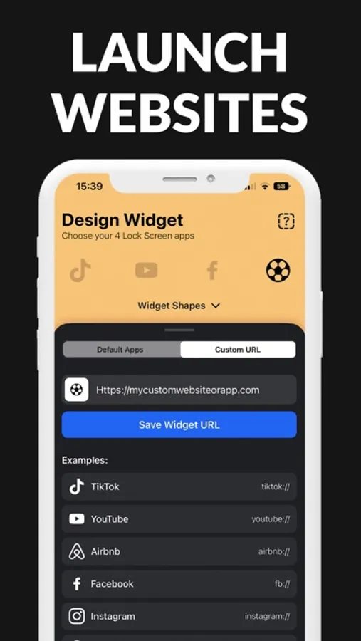 Each widget can open any URL you want; there is a list in the app to select from and you can add your own if you wish.