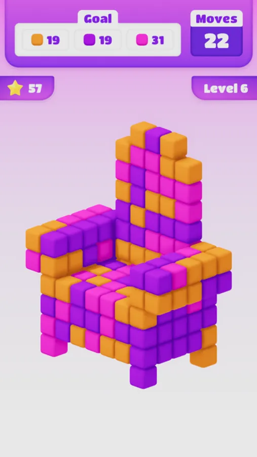 Connect cubes from the same color to crush them! Make the longest chains by changing the camera perspective.