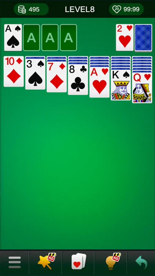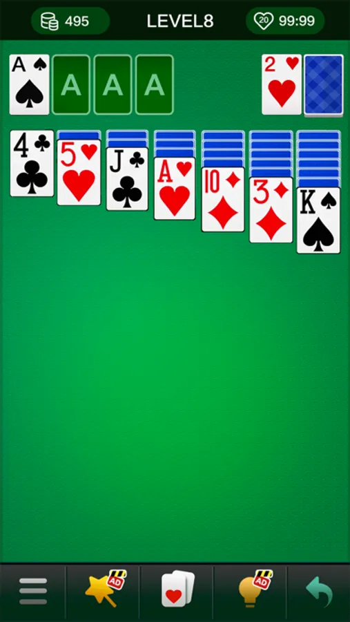 - The goal is to move all cards to the top left corner. Sort from A to K. For example, A, 2, 3, etc.