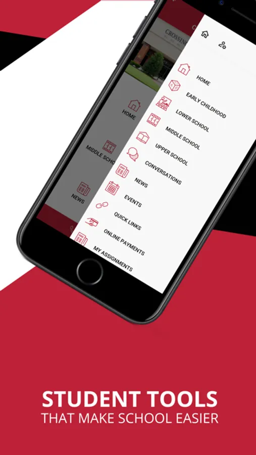 The Crossings Christian School app by Edlio features: