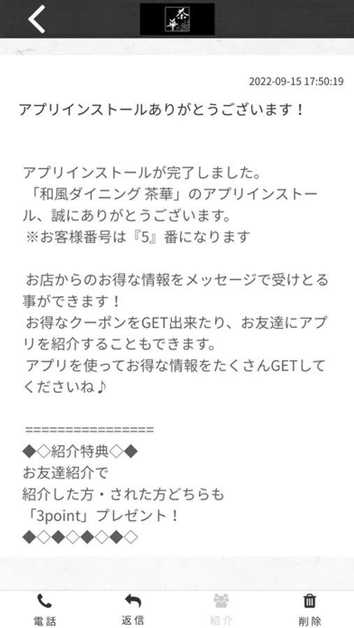 和食 茶華のアプリをSNSを通じてお友達に紹介する事ができます。