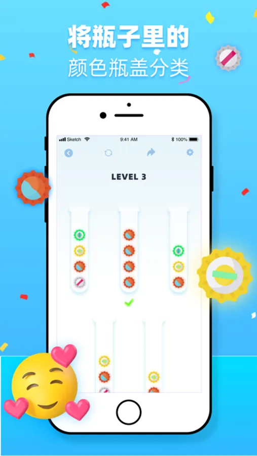 玩家需要从上面三个游戏中选择一个进行,瓶盖分类,将相同的瓶盖放在一起;
