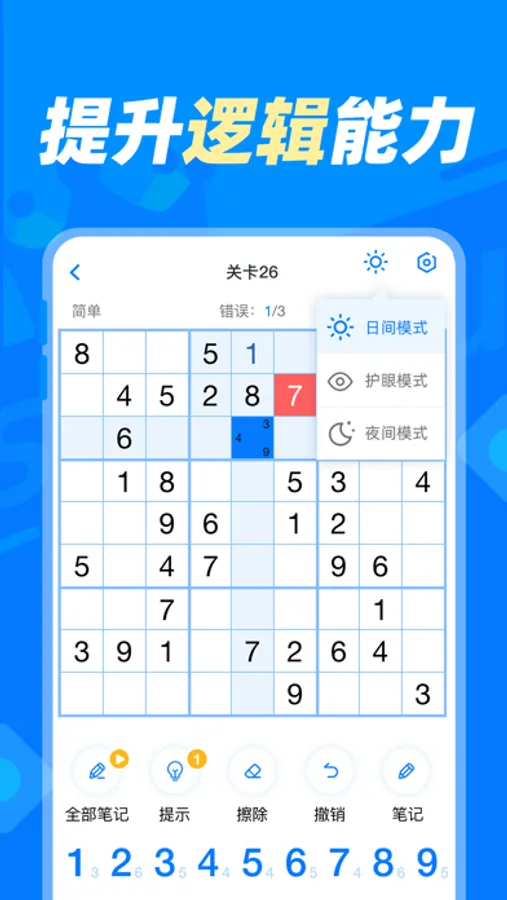 3.经典数独超过6000道题目,分为四个难度等级,为不同程度的用户提供不同难度的题目。