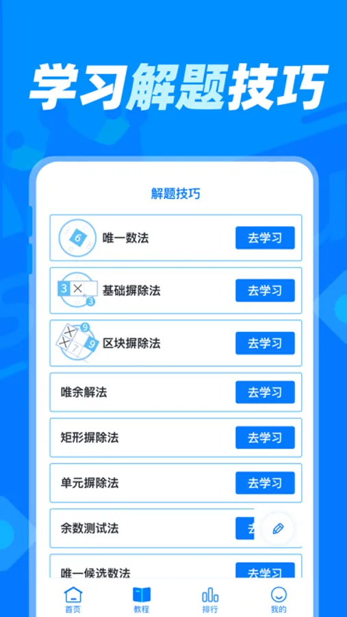 5.“解题技巧”提供多种数独解法教程,从基础到高级,助初学者快速成长为高手。