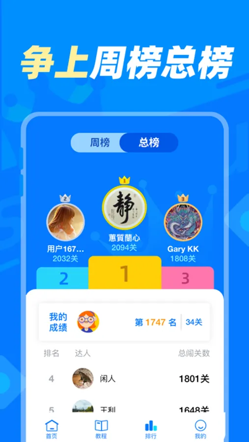 7.我的成绩,全方位记录自己每一题的闯关成绩,清晰展示自己的成长之路