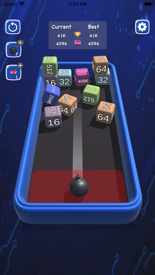 The further you go, the harder gameplay is. Don’t cross the red line, unless you want to start the puzzle game again! Aim precisely and keep a sharp eye on the chain cubes merging.