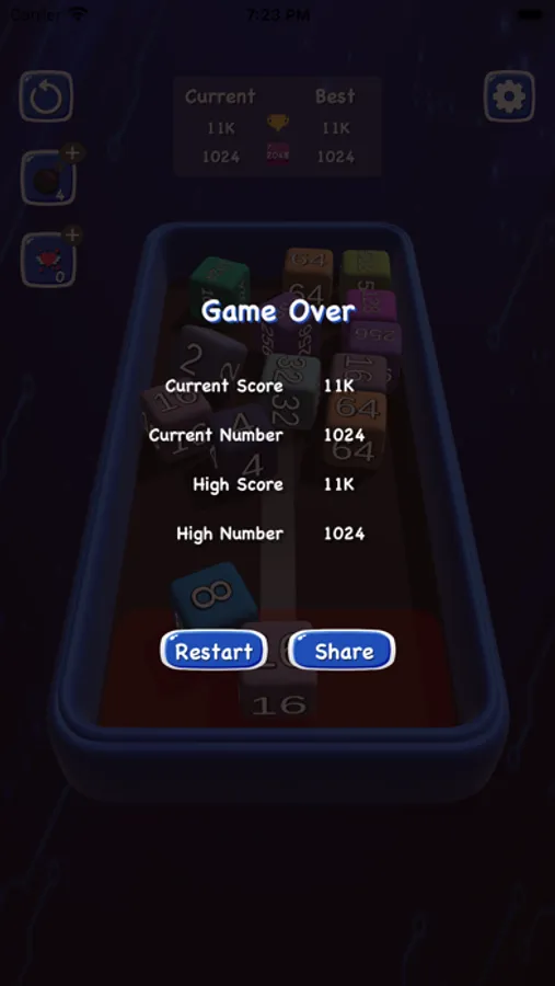 4. Smash numbered blocks together to reach the score of 2048! But 2048 is not the end! You can keep increasing numbers and try to get as many points as you can!